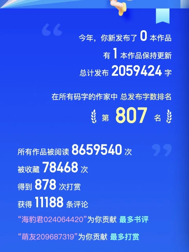 先看图,25年更新205万字,平均每天更新5700字,并不是很多,懈怠了